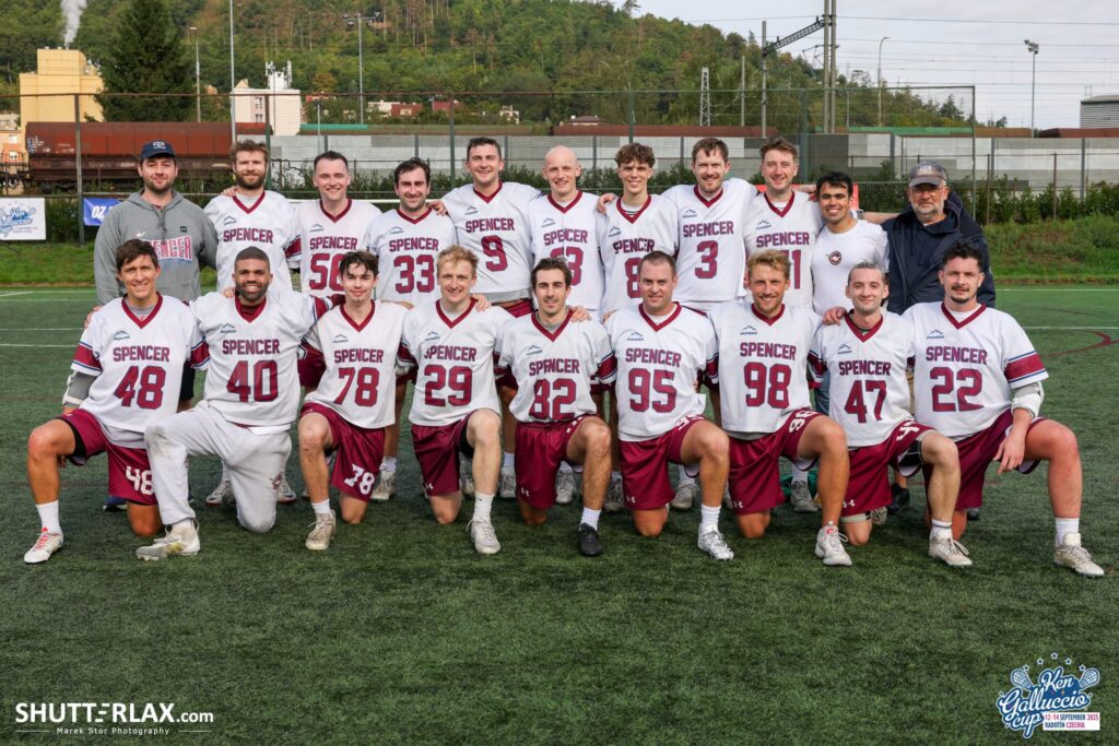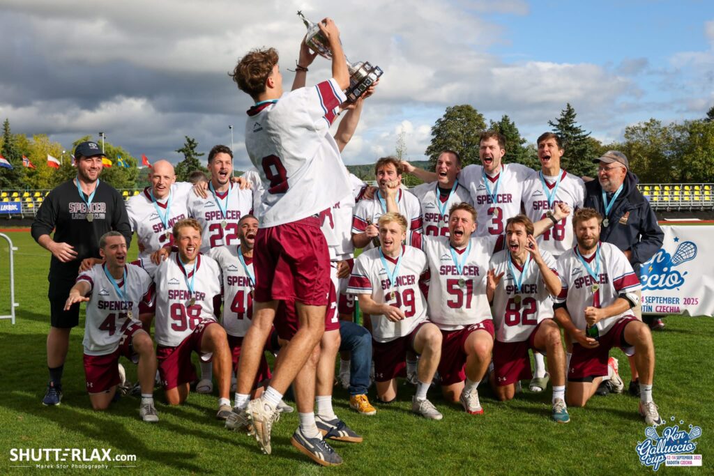 Spencer LC are crowned 2025 European Club Champions after going unbeaten at the Ken Gallucio Cup. They opened and closed their campaign with victories over Norwegian champions, Olso Saints (9:3 and 7:3), and beat the local Czech champions, SK Lacrosse Jižní Město (7:4) in a rain-soaked semi-final. Sandwiched between were dominant victories against the champions of Netherlands (Delft Barons 16:1), Italy (Bologna Lacrosse 13:1) and Poland (Panthers Wroclaw 11:1).